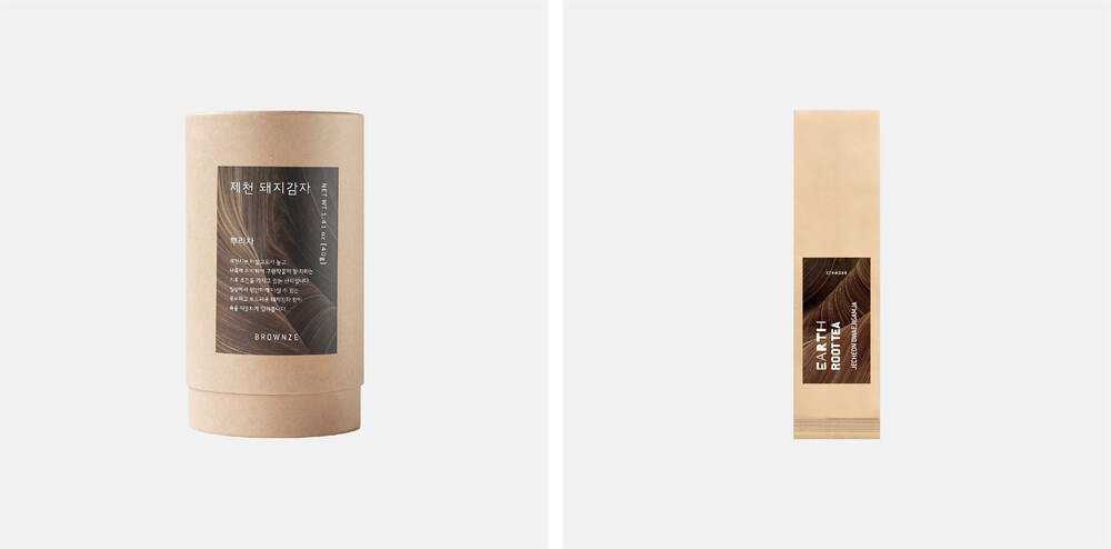 크라프트 상자 안에 안동 도라지차, 제천 돼지감자차,