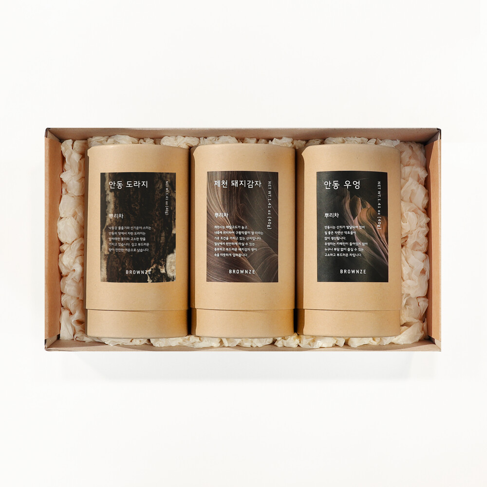[브라운즈] 디카페인 한국 뿌리차 3종 선물 패키지