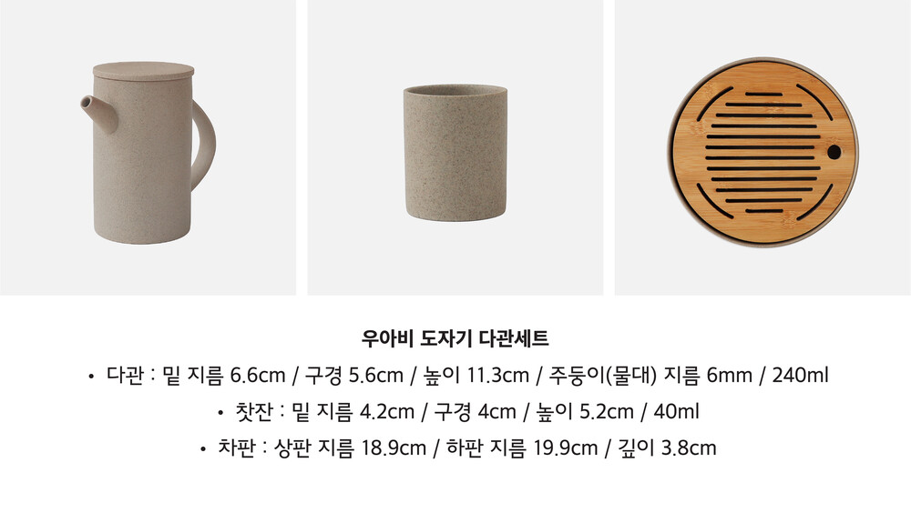 우아비 다기세트는 자연의 조화와 안정감을 상징하는 나무의 고요한 특징을 담아내어,