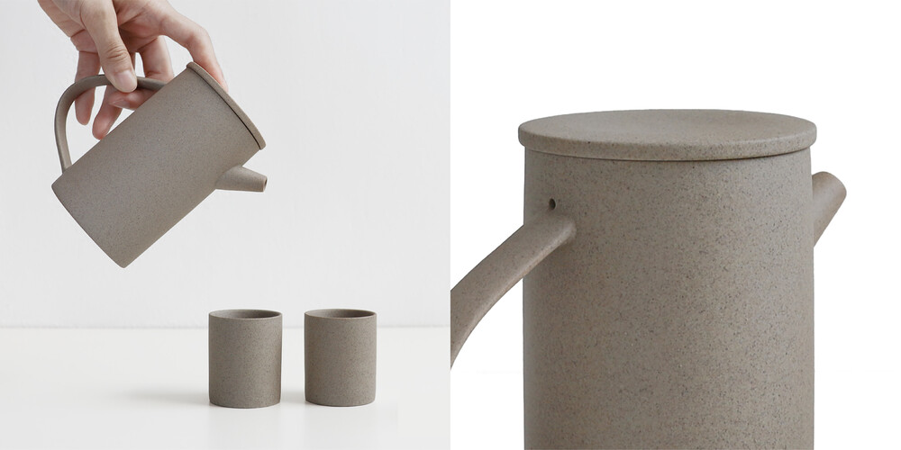 다관의 뚜껑은 손잡이가 없는 평평한 형태로 주전자와 일체감을 주고,
