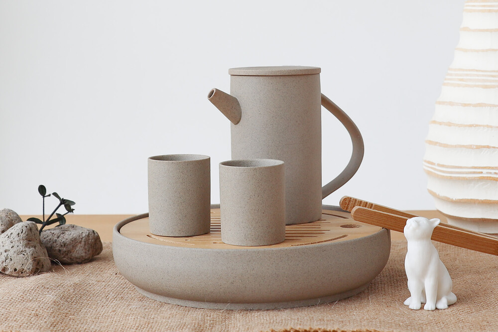 우아비 다기세트는 자연의 조화와 안정감을 상징하는 나무의 고요한 특징을 담아내어,