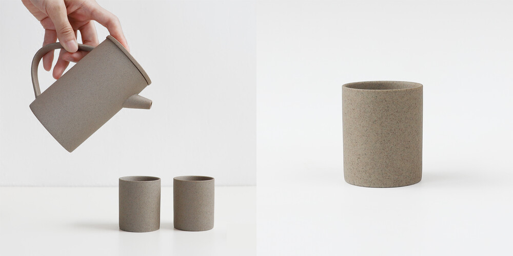 찻잔은 다관과 같은 원기둥 형태로 한손으로 잡기 편리한 크기와 질감을 가지고 있습니다.