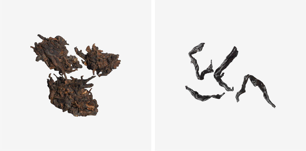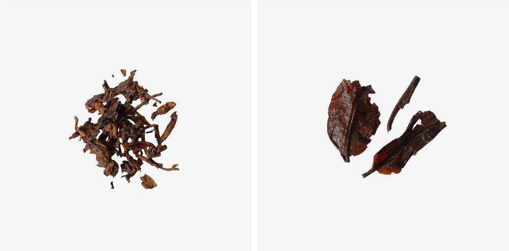 찻잎을 우려내기 전과 우려낸 후의 모습
