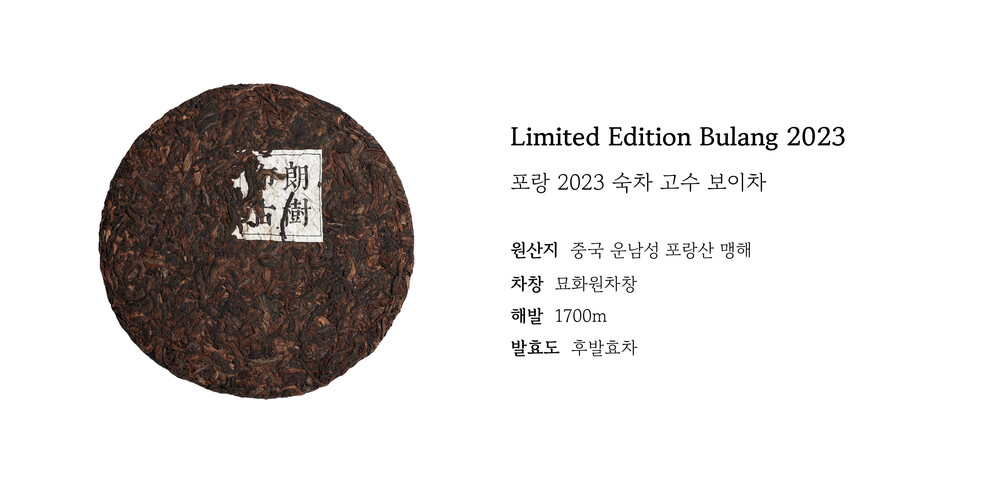 중국 운남성 맹해현 지역의 남쪽 포랑산에서 2023년에 채엽한 찻잎으로 만든 완전 숙성 보이차입니다.