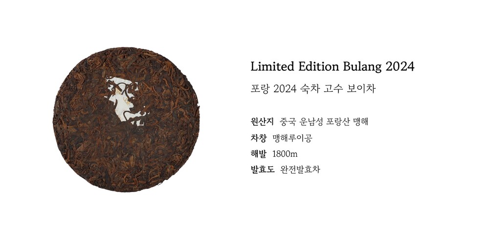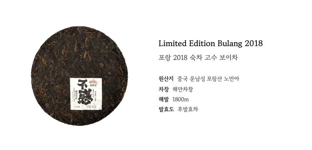 중국 운남성의 포랑산의 노만아에서 2018년에 채엽된 찻잎으로 만들어진 완전 숙성 보이차입니다.