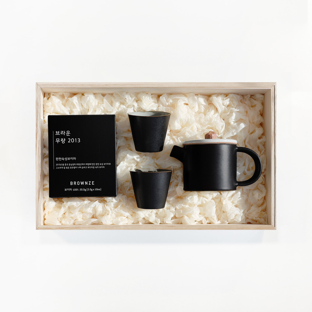 [브라운즈] 아침햇볕 숙차 보이차 티백 선물세트, 블랙