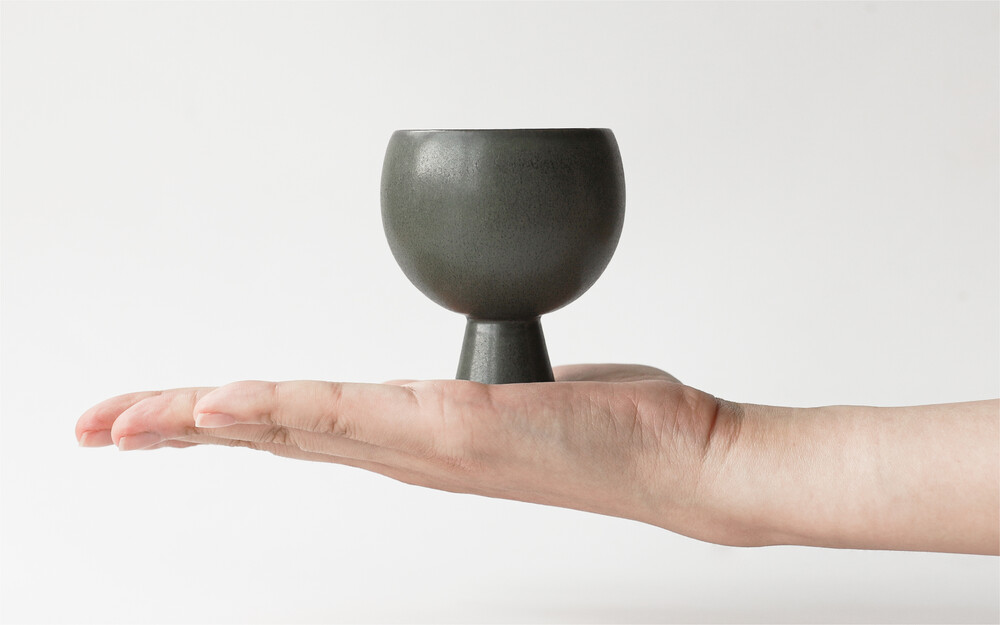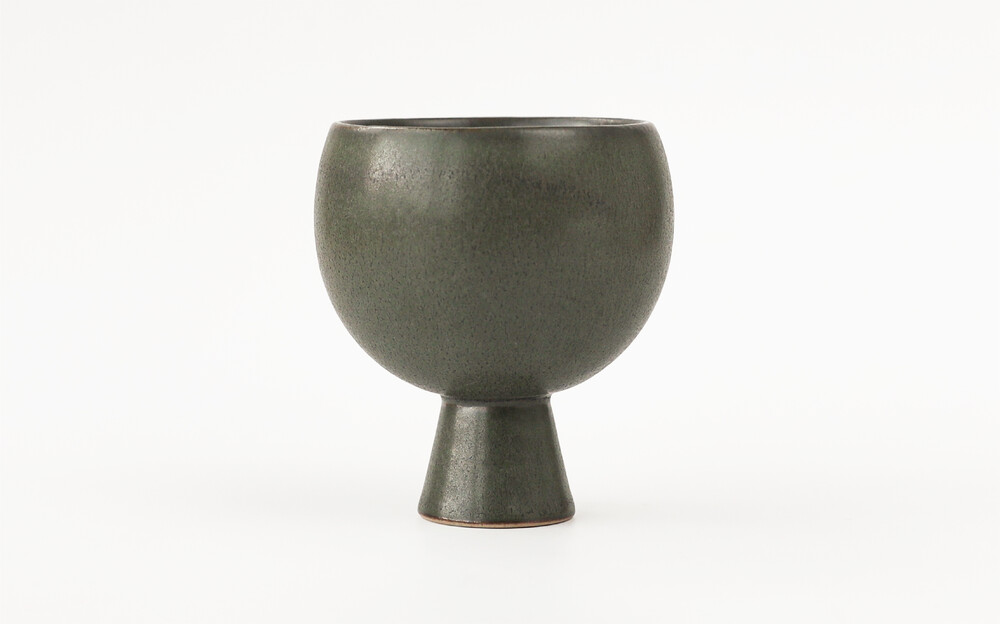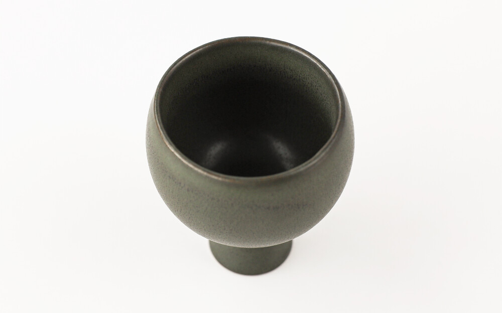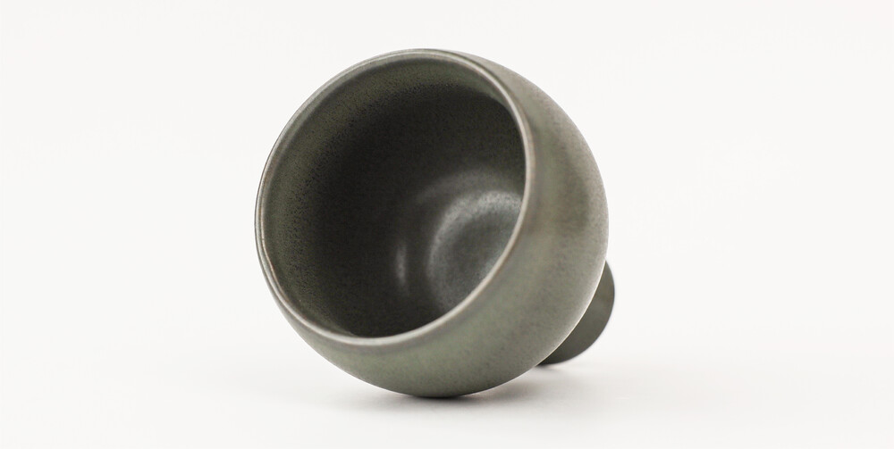 블랙키쉬그린이라고 불리우는 먹녹유로 오묘한 카키 색감을 띄우는 스커트 찻잔입니다.