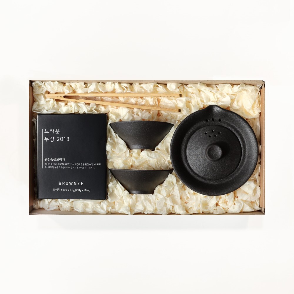 [브라운즈] 운남성 숙차 보이차 스타터 선물세트, 블랙