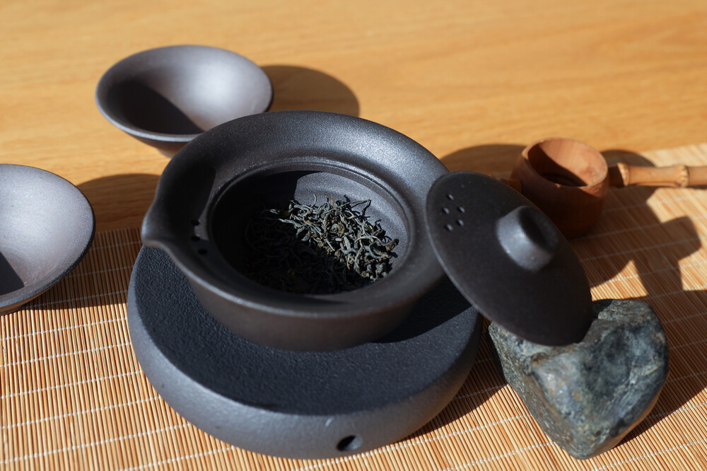 -티팟에 물을 8부정도 담고 뚜껑을 닫아 차를 옮겨주세요.