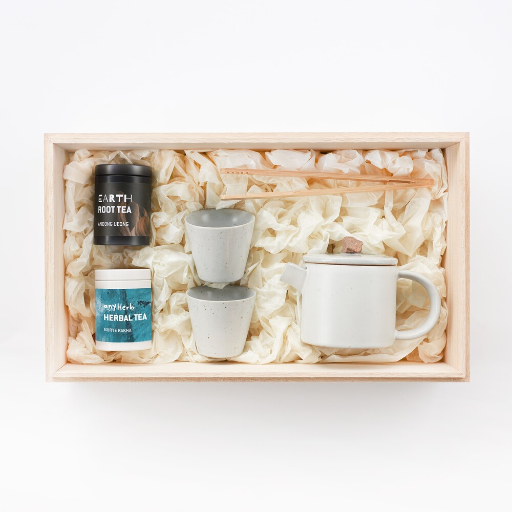 (구례 박하, 안동 우엉, 아침햇볕 2인 다관세트, 차 집게)