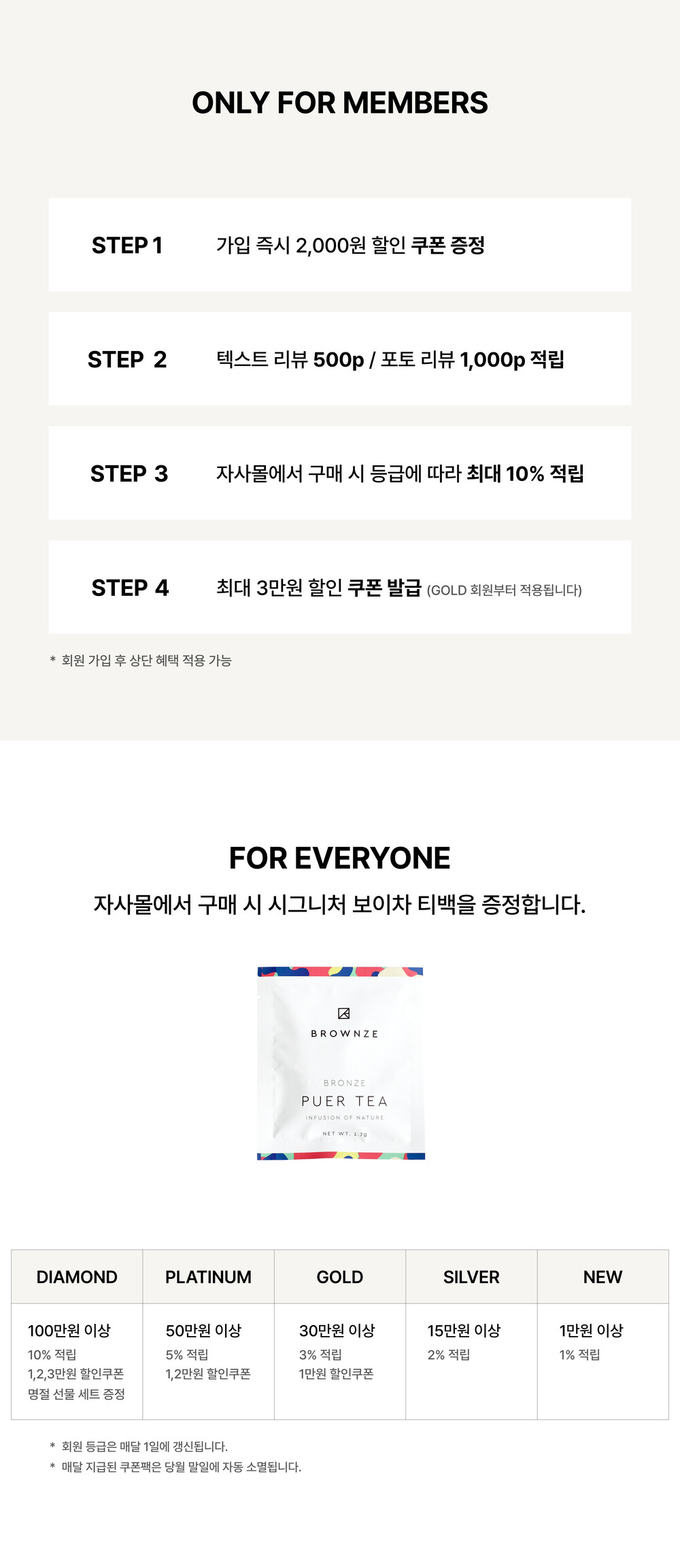 - 50,000원 미만 주문 시 배송비가 부가됩니다. (일부 지역 추가운임 발생)