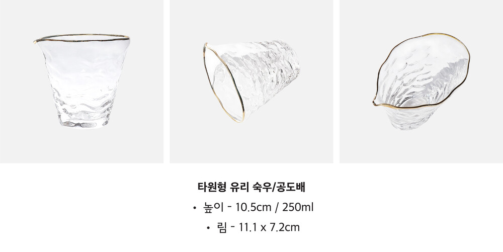 [브라운즈] 웨이브 타원형 유리 숙우/공도배 (골드링 림)