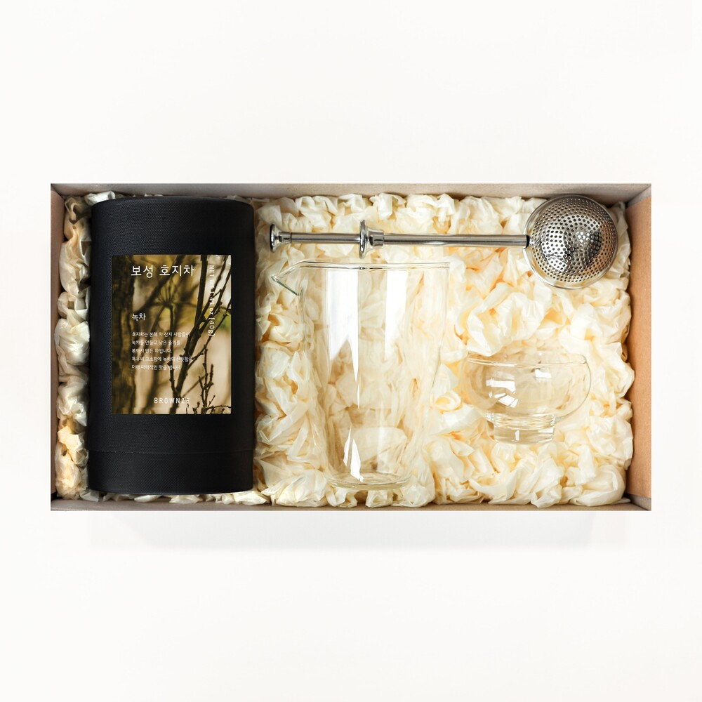 [브라운즈] 보성 호지차 유리 인퓨저 다도 선물세트
