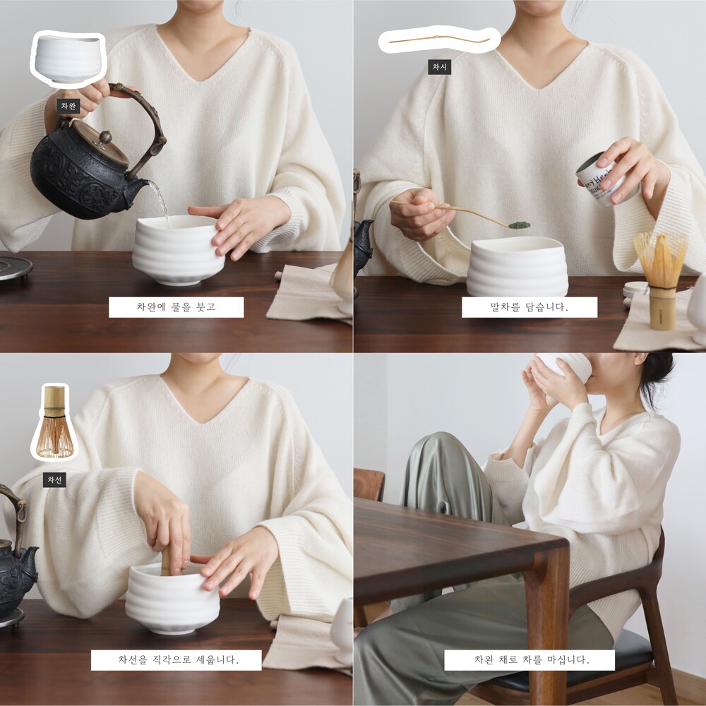 - 차완에 미지근한 물을 붓고, 차완에