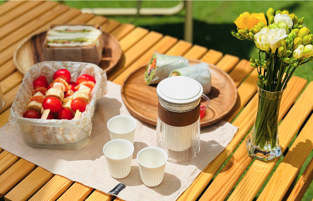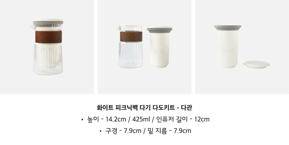 찻잔이 담긴 인퓨저를 다관에 담아 피크닉백에 담으면