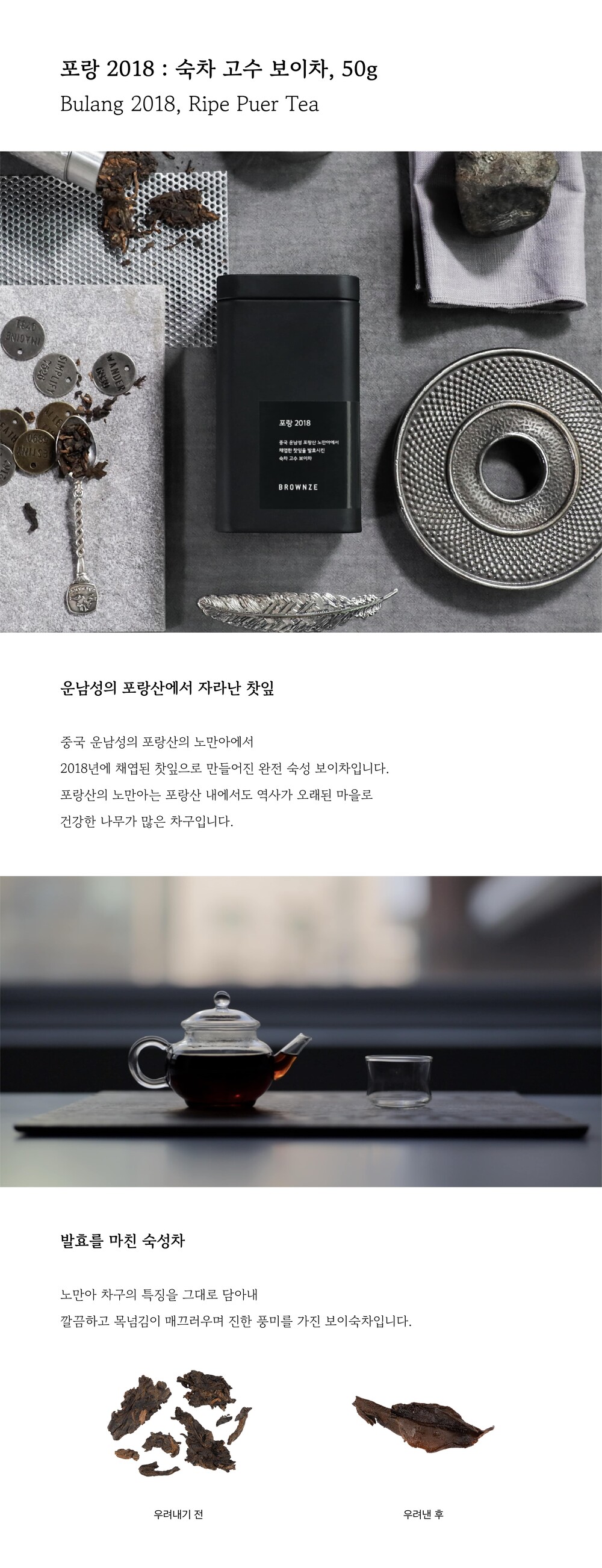 [브라운즈] 포랑 2018 : 숙차 고수 보이차 50g