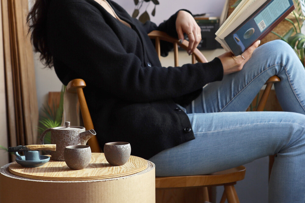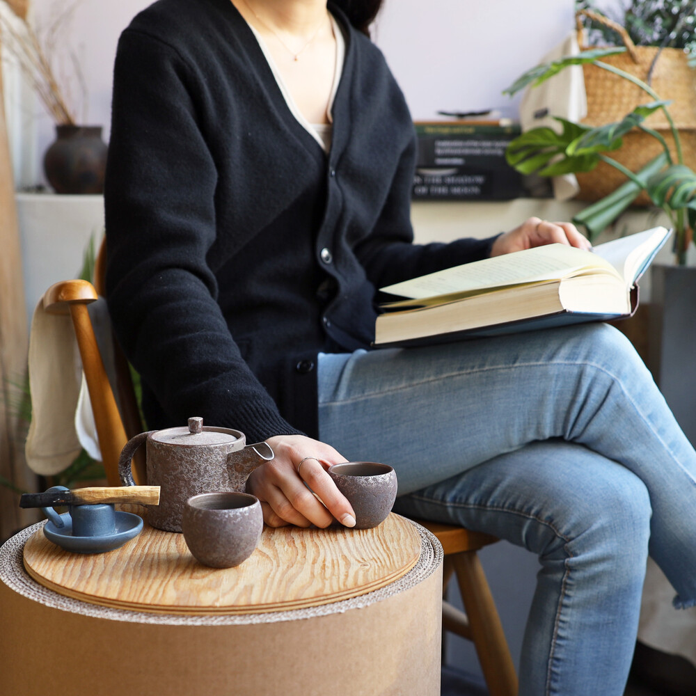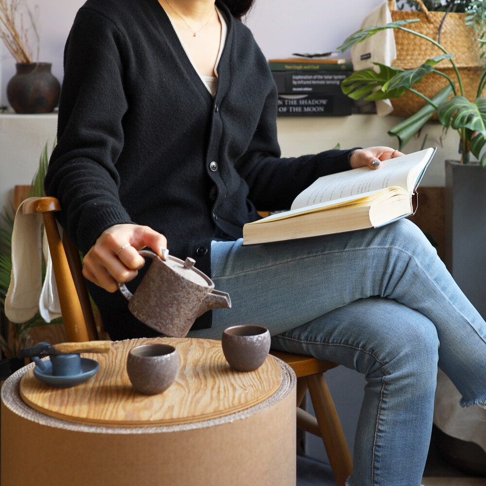 이색적이면서도 소박한 매력의 달조각 다관과 함께 사색에 잠겨보세요.