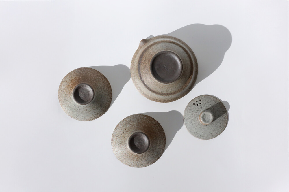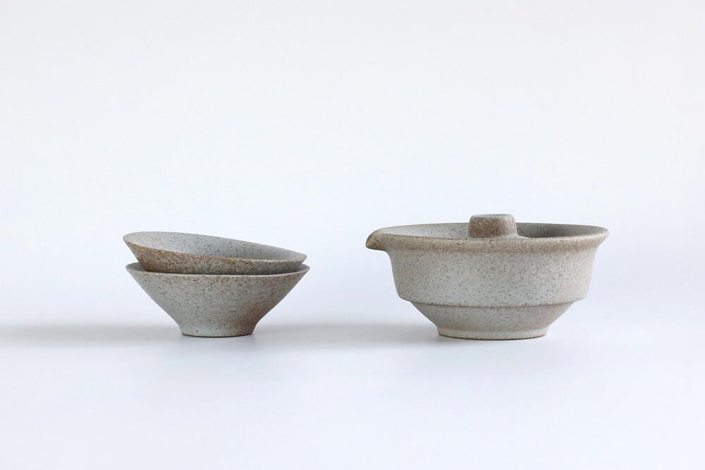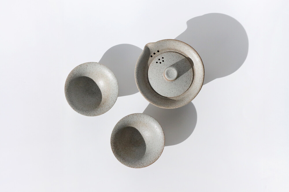 쾌객배는 전통 자사호와 개완배를 현대적으로 재해석한 도자기 다관 세트입니다.