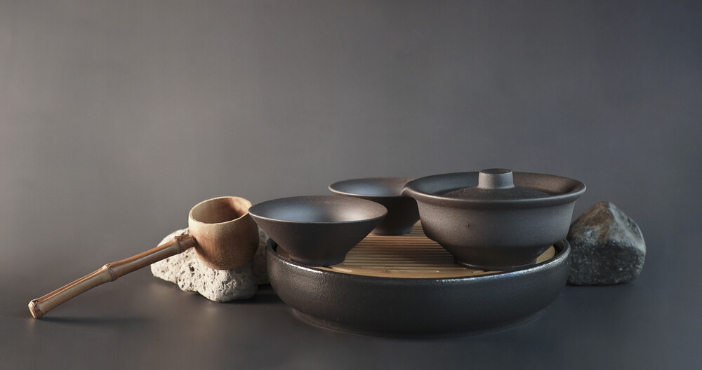 시그니처 쾌객배 도자기 다구 패키지, 블랙
