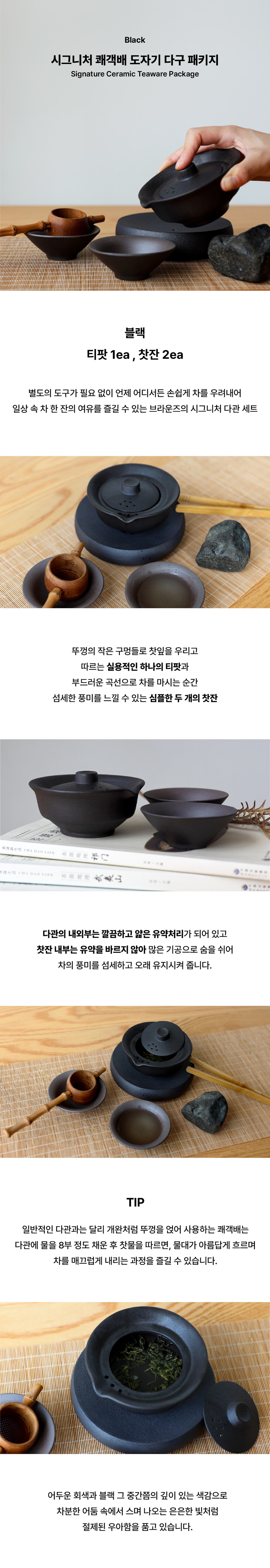 [브라운즈] 시그니처 쾌객배 도자기 다구 패키지, 블랙
