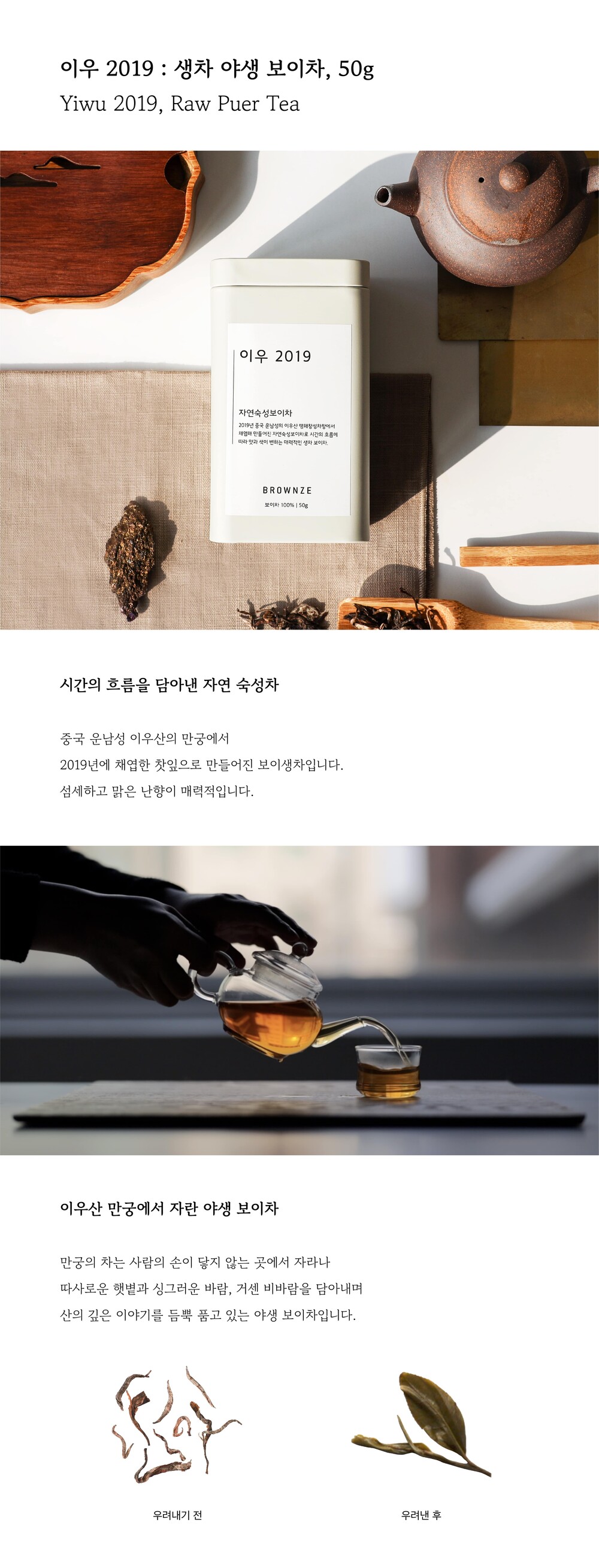 [브라운즈] 이우 2019 : 생차 야생 보이차 50g