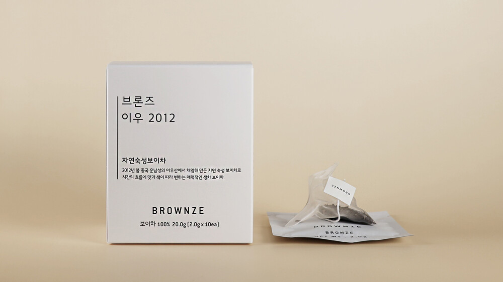 크라프트 상자 안에 브라운즈 시그니처 보이차 이우2012 티백과