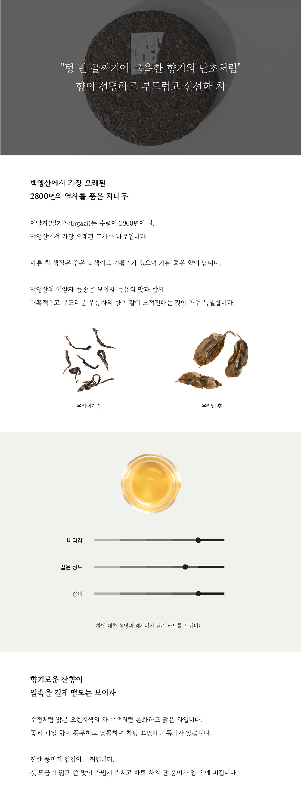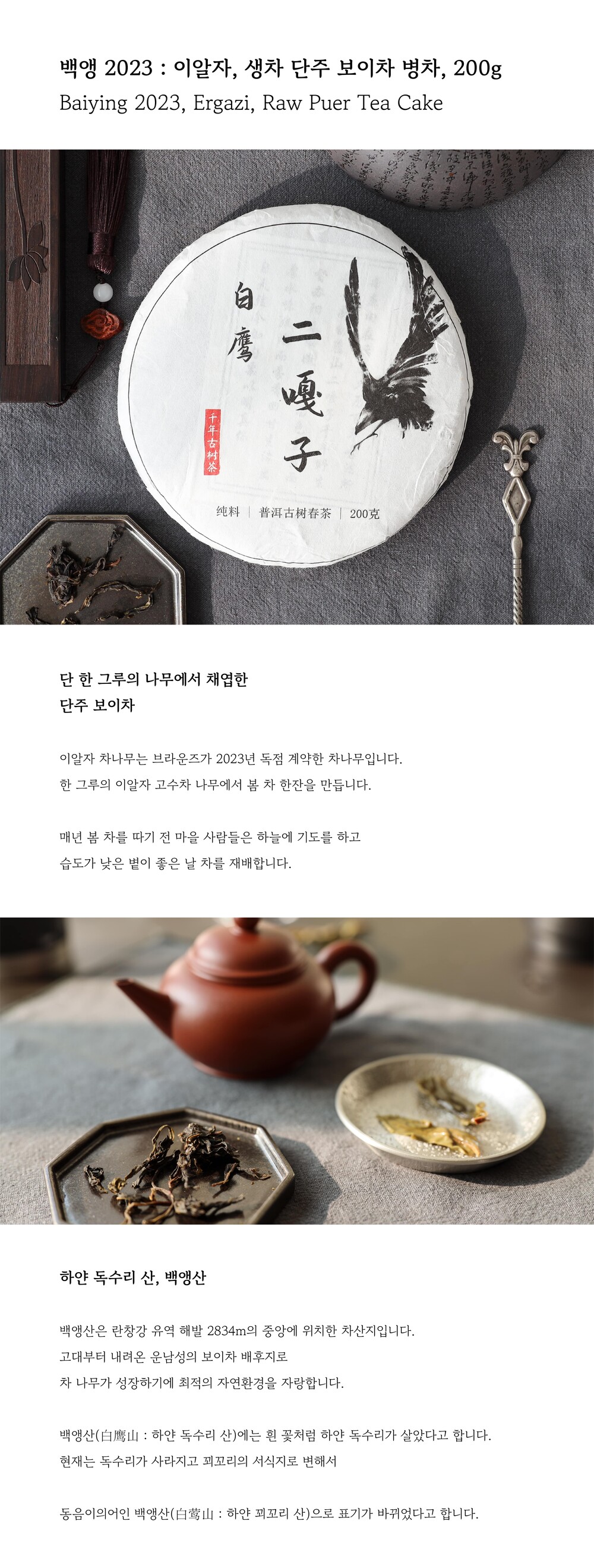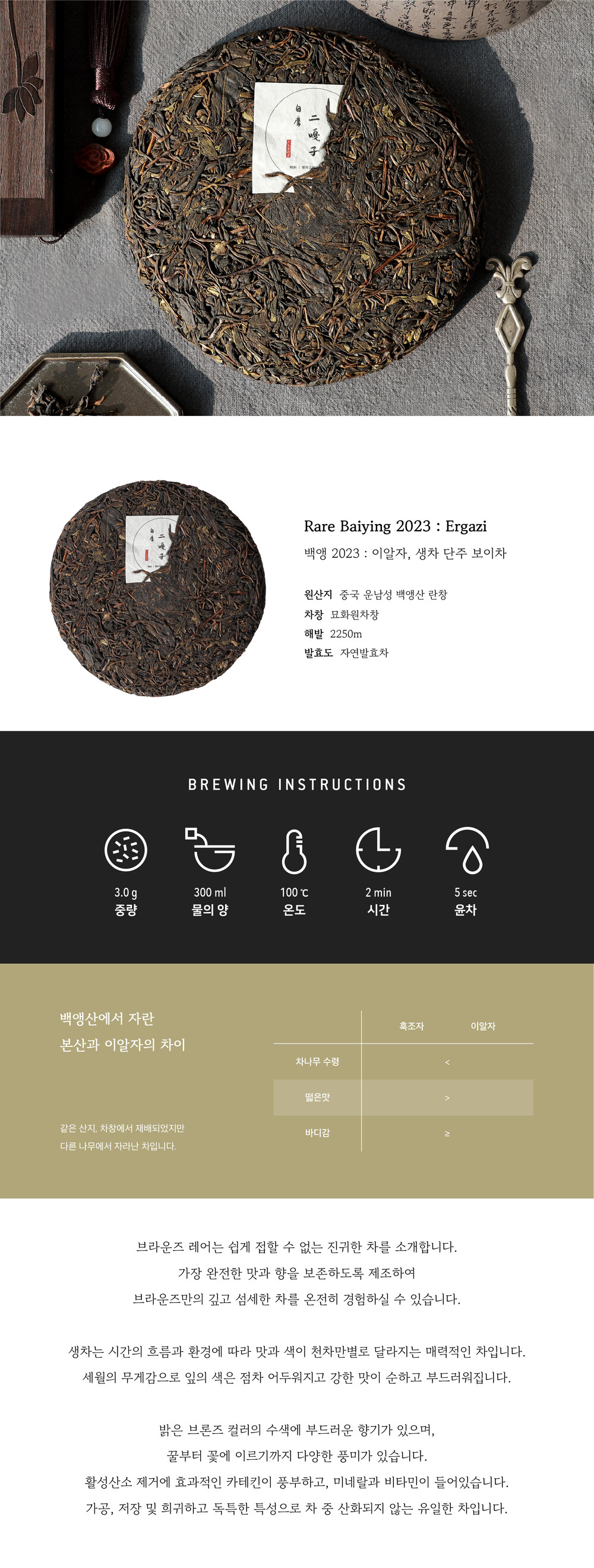 [브라운즈] 백앵 2023 : 이알자 생차 단주 보이차 병차 200g