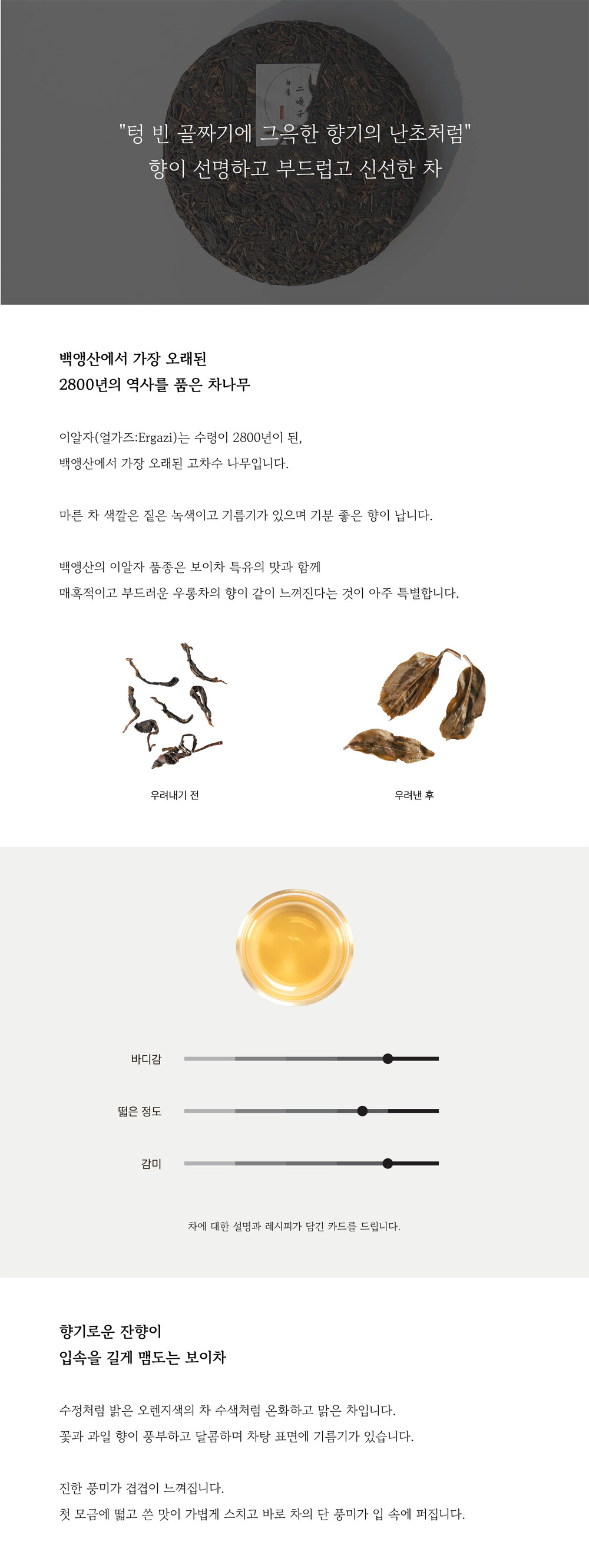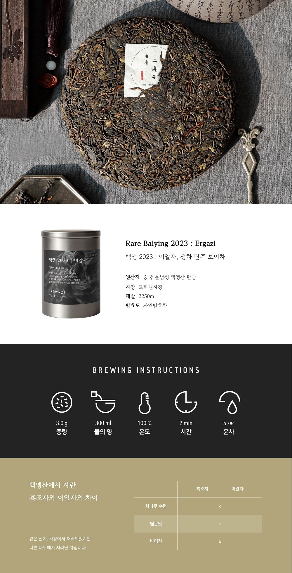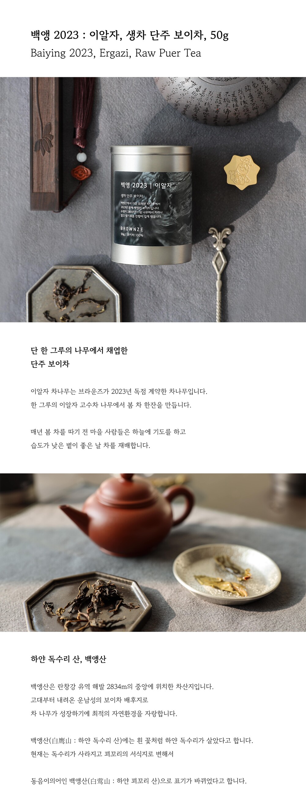 [브라운즈] 백앵 2023 : 이알자 생차 단주 보이차 50g