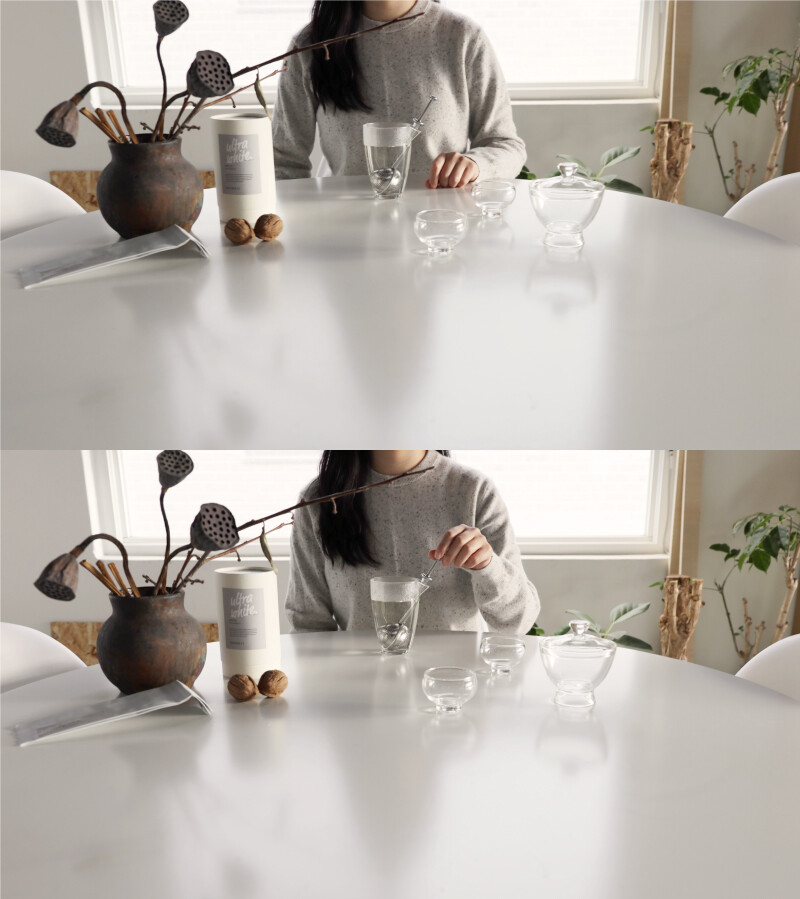 차를 우려내기 전과 우려낸 후의 찻잎의 모습을 확인해 보세요.