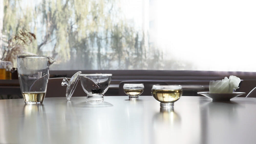 투명한 다기를 통해 차의 색과 찻잎이