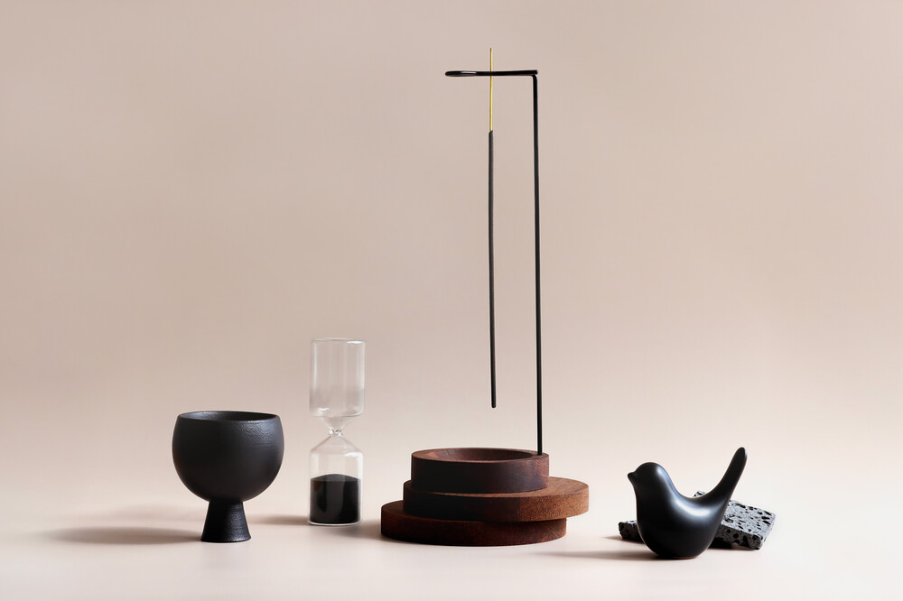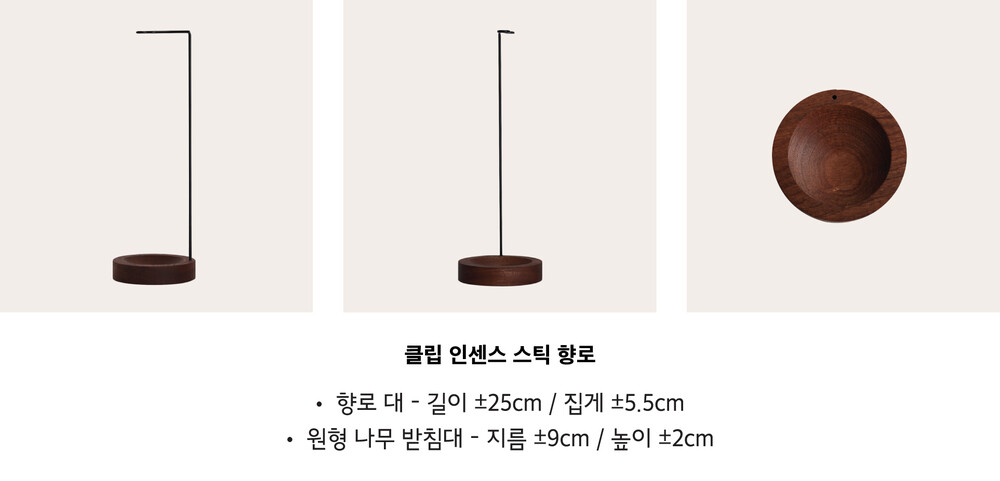 모던한 블랙 향로 대와 어두운 색감의 받침대를 가진 브라운 색상