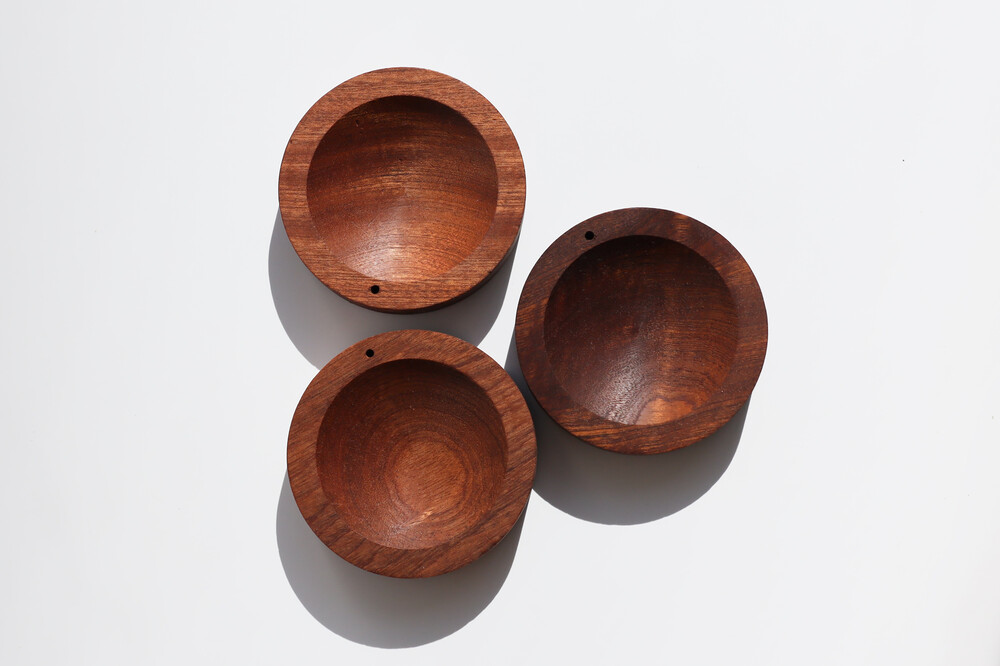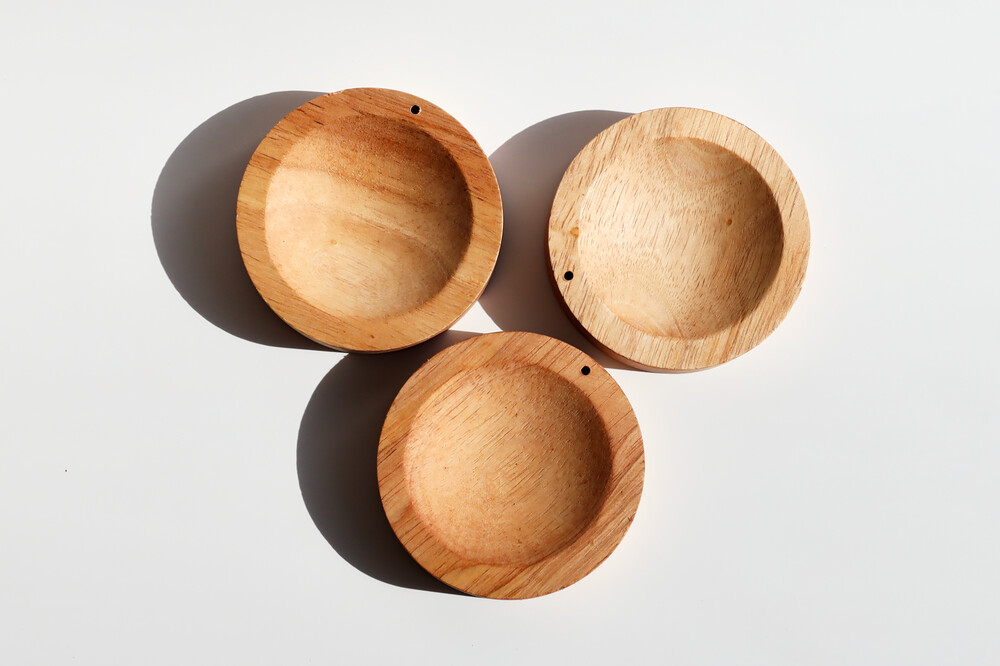 나무의 특성 상 각자 다른 색과 패턴을 지닌 원형 나무 받침대는