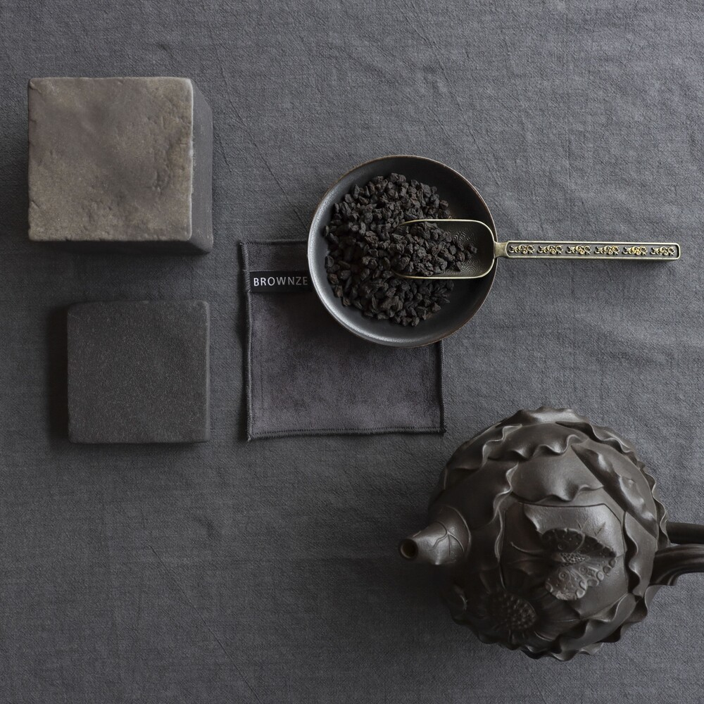 화산송이 찻잔은 은은한 먹빛을 띄고 있으며,