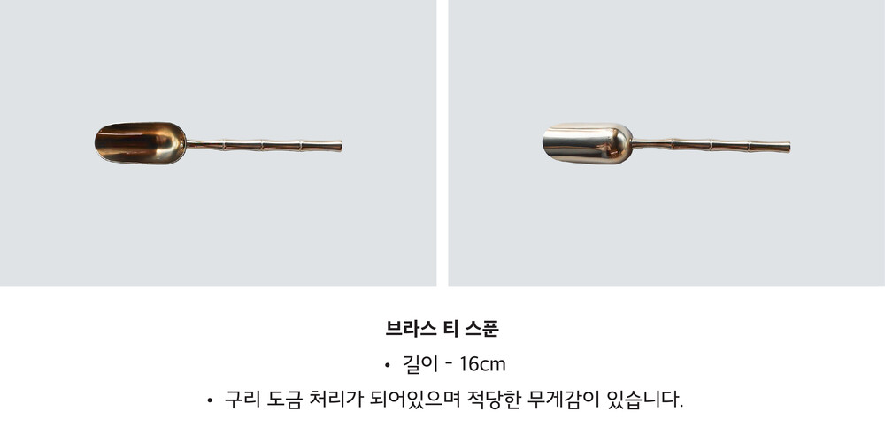 - 브라스 티 스푼은 구리도금과 연마 처리에 따라 색상이 조금씩 상이할 수 있습니다.