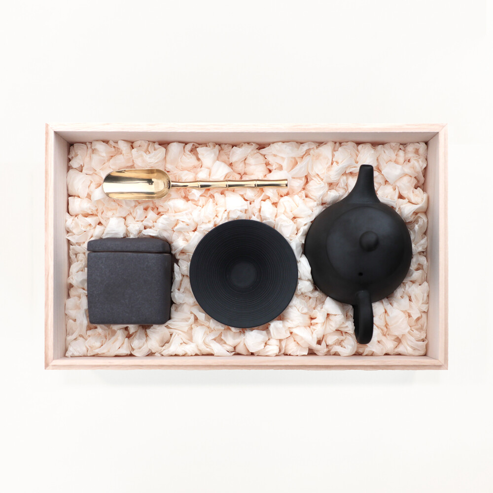 오동나무 상자 안에 화산송이 화산석 다관세트, 포랑 2017, 차함, 티 스푼을 담아드립니다.