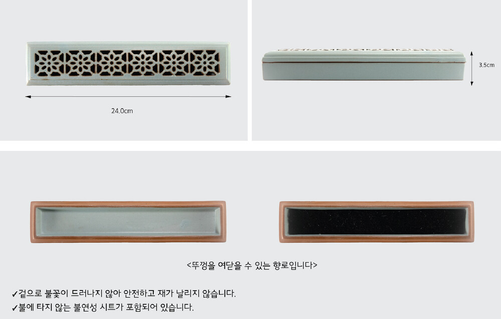- 내부의 불연 천이 열에 의해 변형이 될 수 있으니 사용 후에는 재를 털어 보관해 주세요.