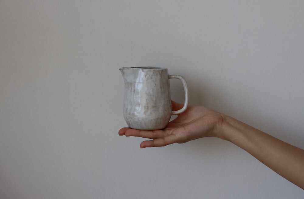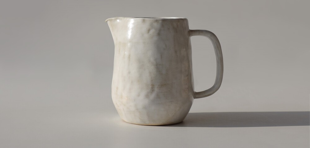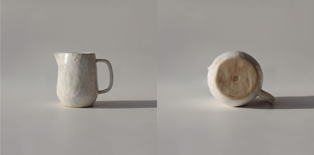 흰빛 흙과 유약이 어우러진 이 제품은 틀에 의존하지 않고