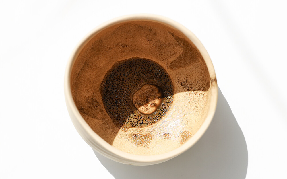 차완에 말차 두 스푼 정도(차시 기준)와 따뜻한 물을 자작하게 부은 후,