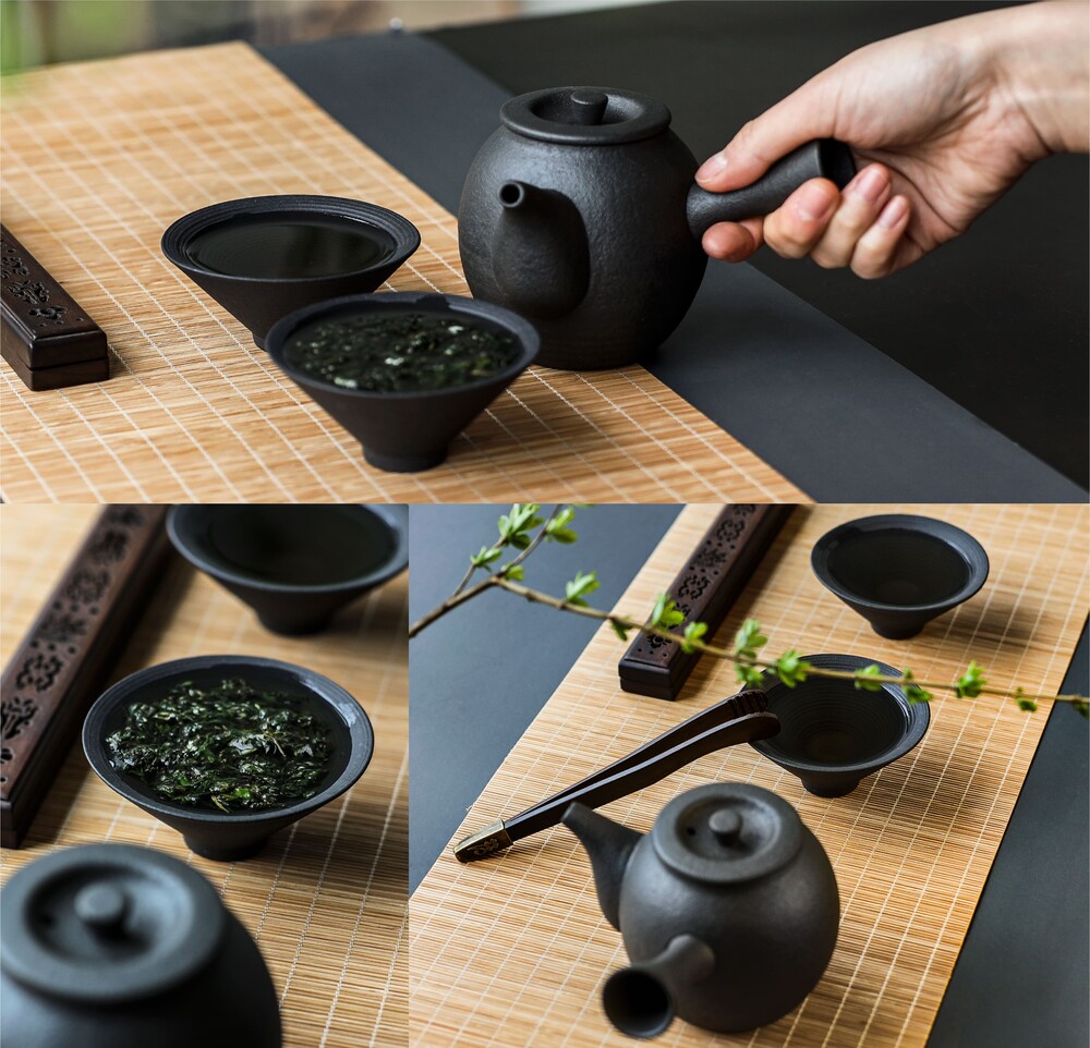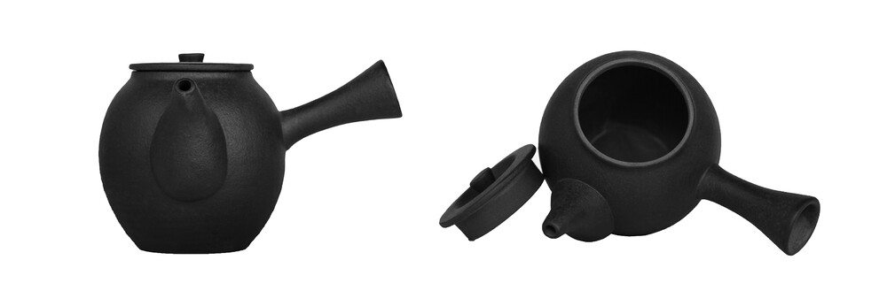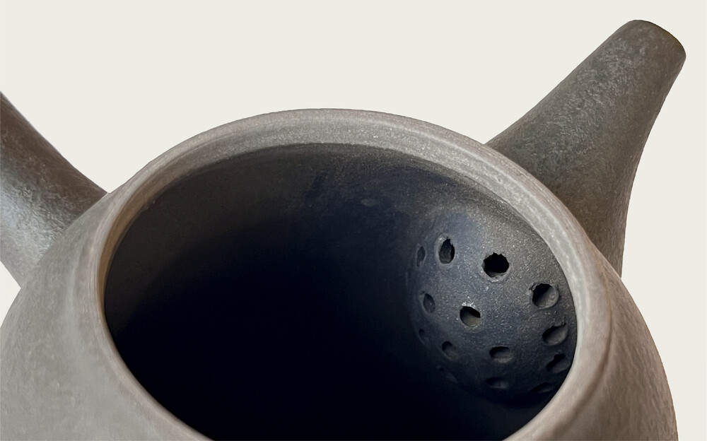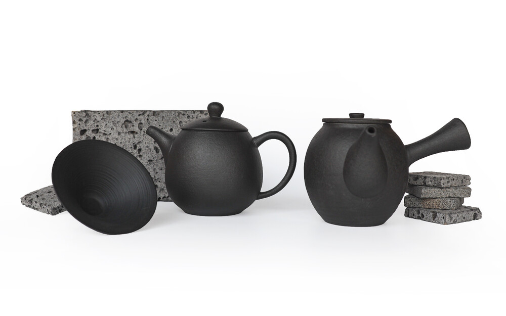 화산송이 다관은 은은한 먹빛을 띄고 있으며,