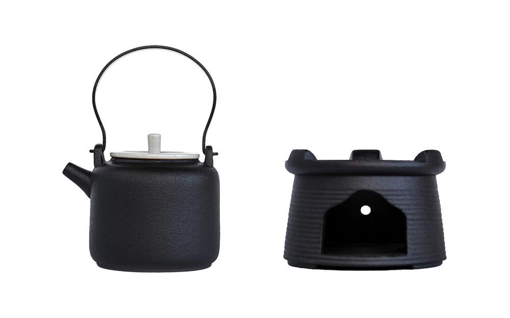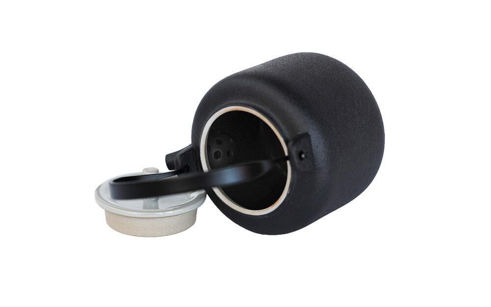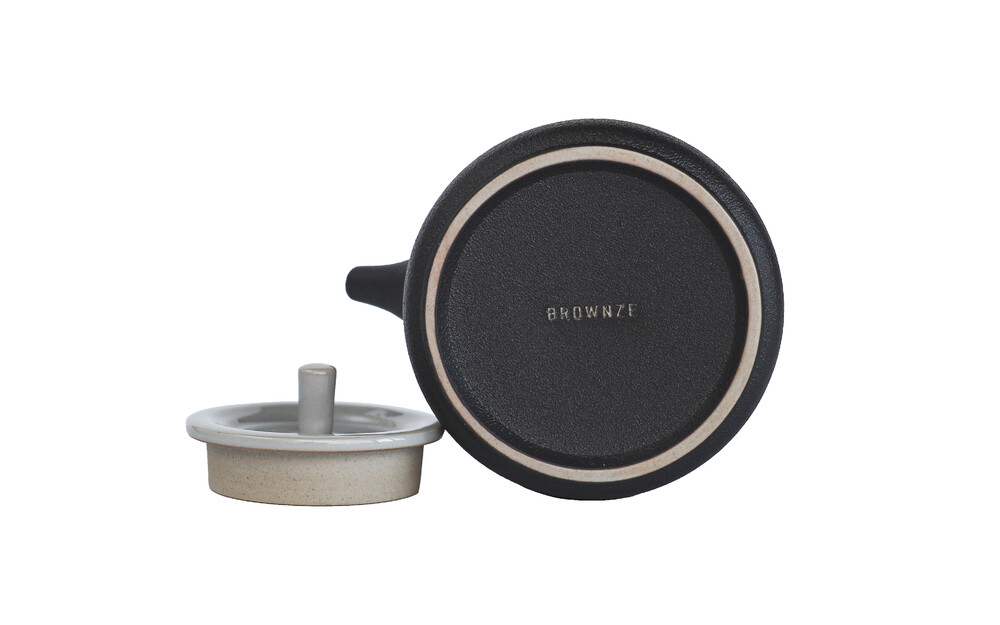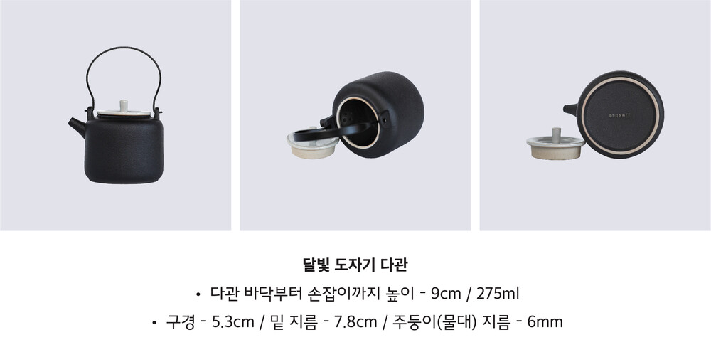 다관의 몸통은 매트한 유약 처리로 단정한 블랙으로