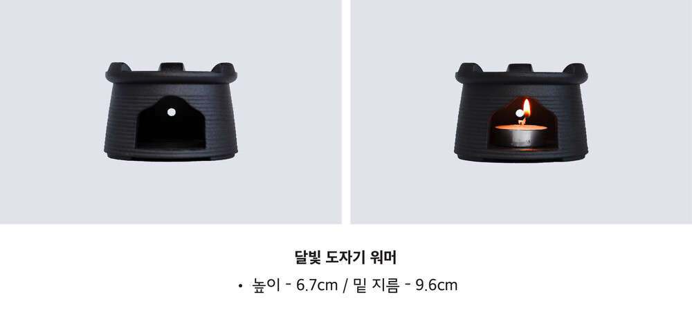 워머에 작은 티라이트 캔들을 켜두고 다관을 올려주면 차가 식지 않도록 은은하게 열을 전달해 줍니다.
