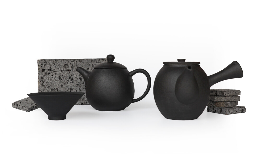 화산송이 다관은 은은한 먹빛을 띄고 있으며,