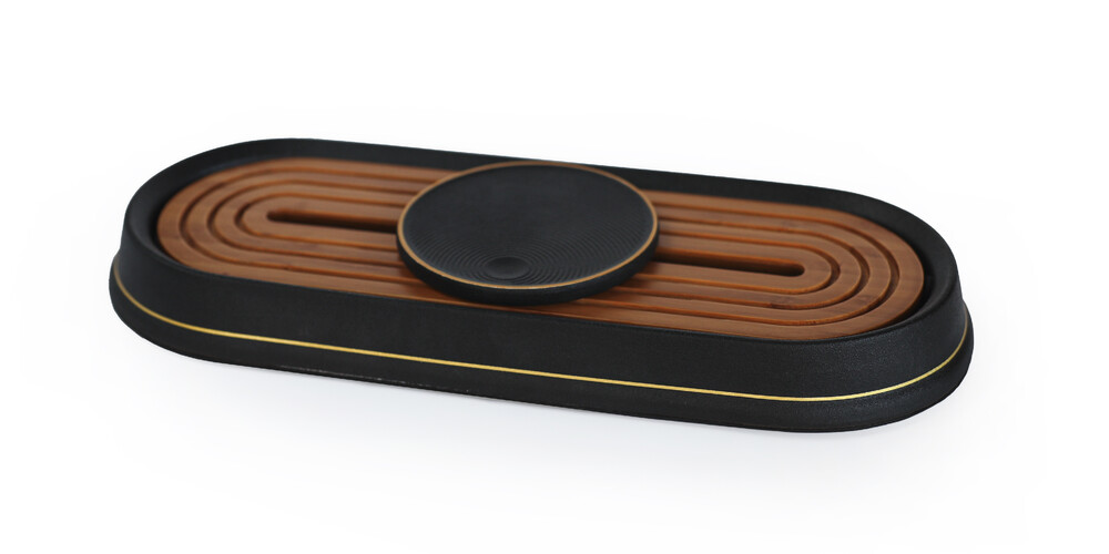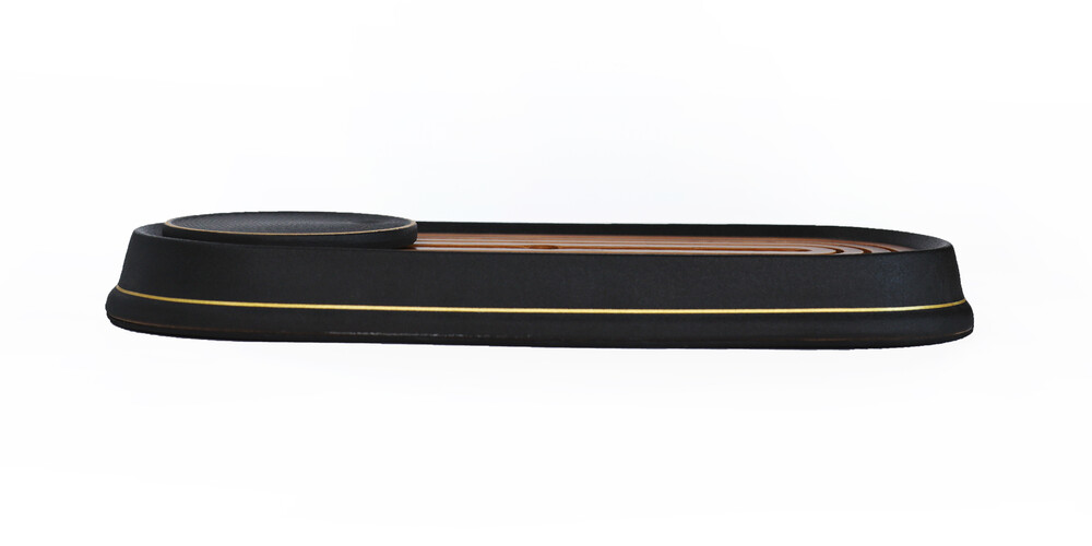 흑유 타원형 도자기 & 대나무 차판 블랙