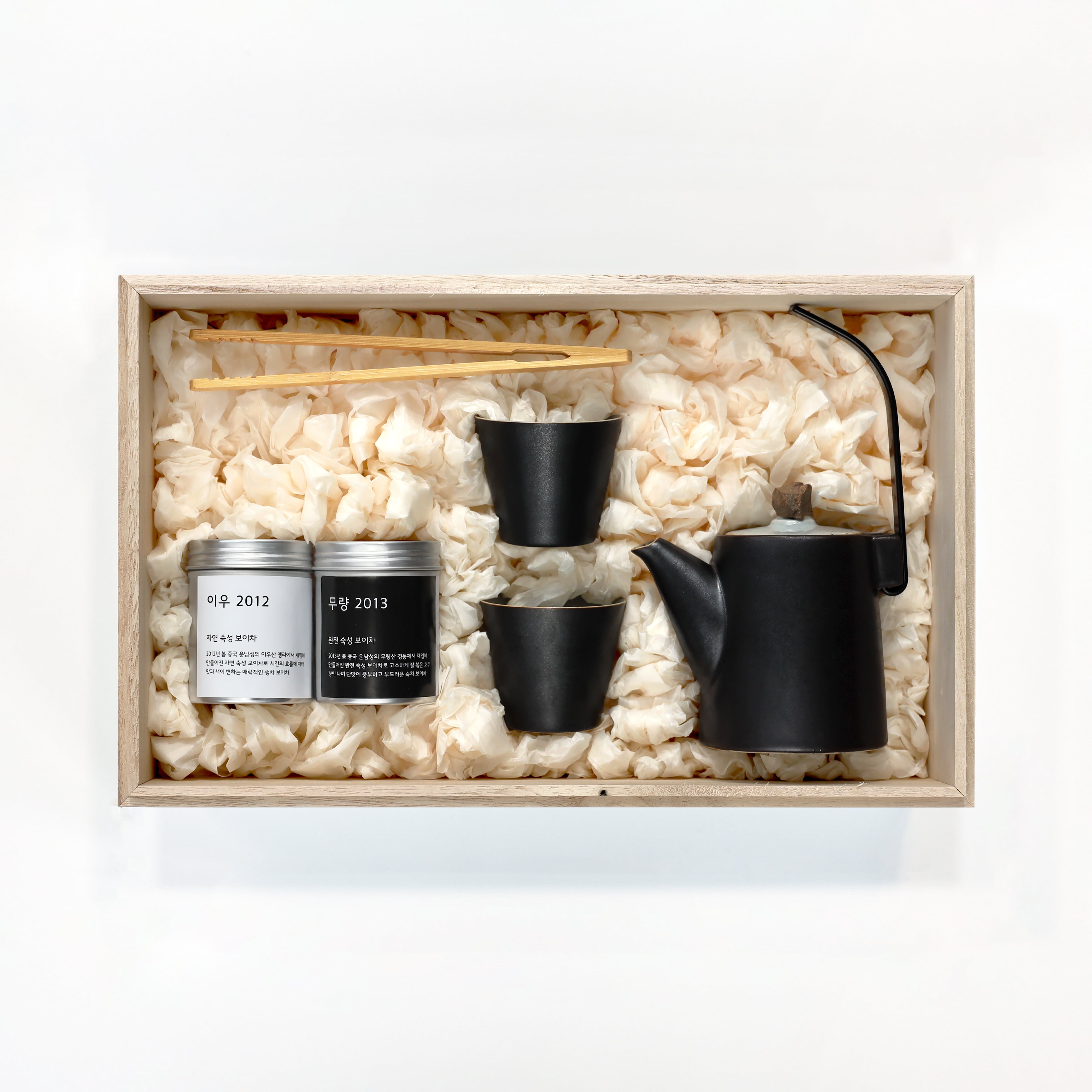 (무량 2013 숙차, 이우 2012 생차, 저녁바람 다구 세트, 차 집게)