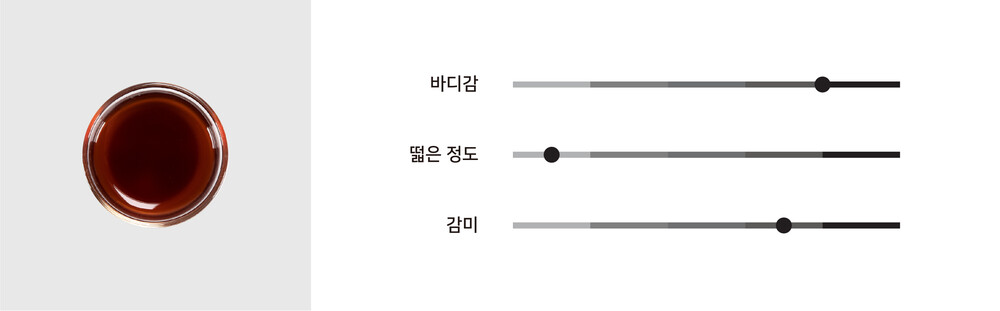 고소하게 잘 볶은 호두향이 나며 순하고 부드럽습니다.