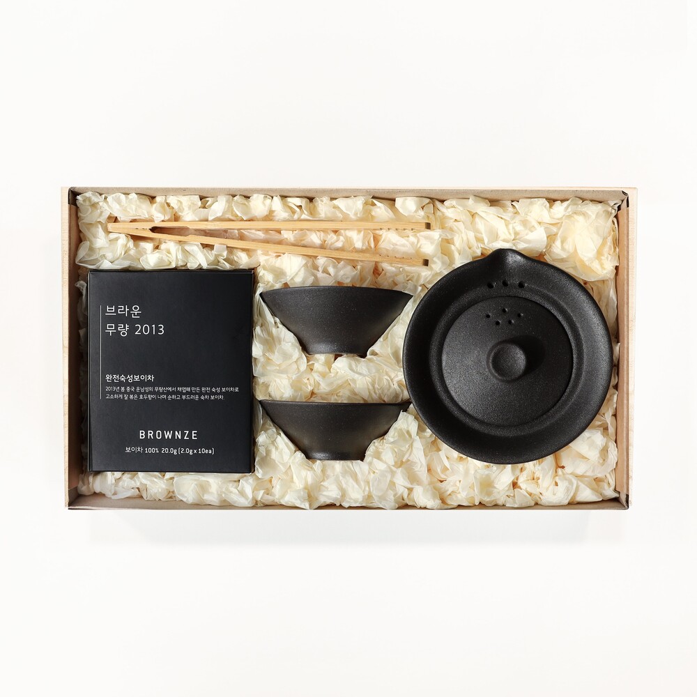 [브라운즈] 운남성 숙차 보이차 스타터 선물 패키지, 블랙